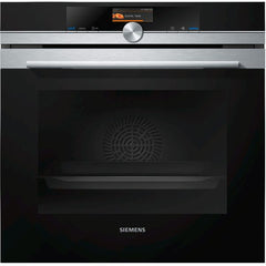 Forno Siemens iQ700 HB676G5S6 multifunções 71 L, Home Connect, limpeza pirolítica activeClean, motor iQdrive, visor TFT 3,7'', 13 modos de aquecimento, foco halogéneo, cookControl Plus com programas automáticos, 3 railes telescópicos em inox e porta softMove.