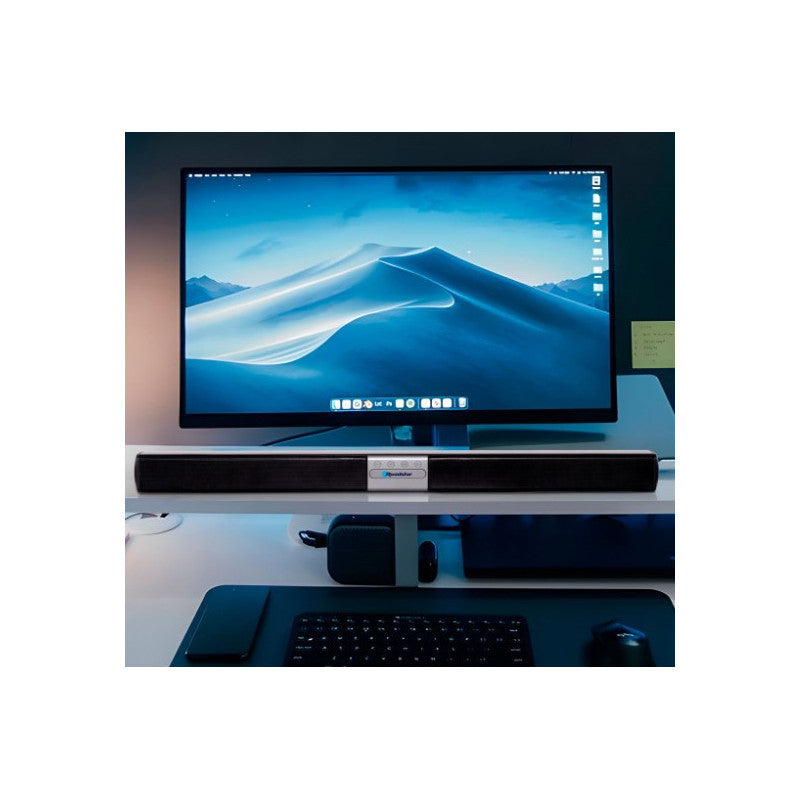 Soundbar estéreo HiFi de 72 cm com potência de 9W RMS e recetor Bluetooth 5.0, ideal para melhorar a experiência sonora em qualquer ambiente.